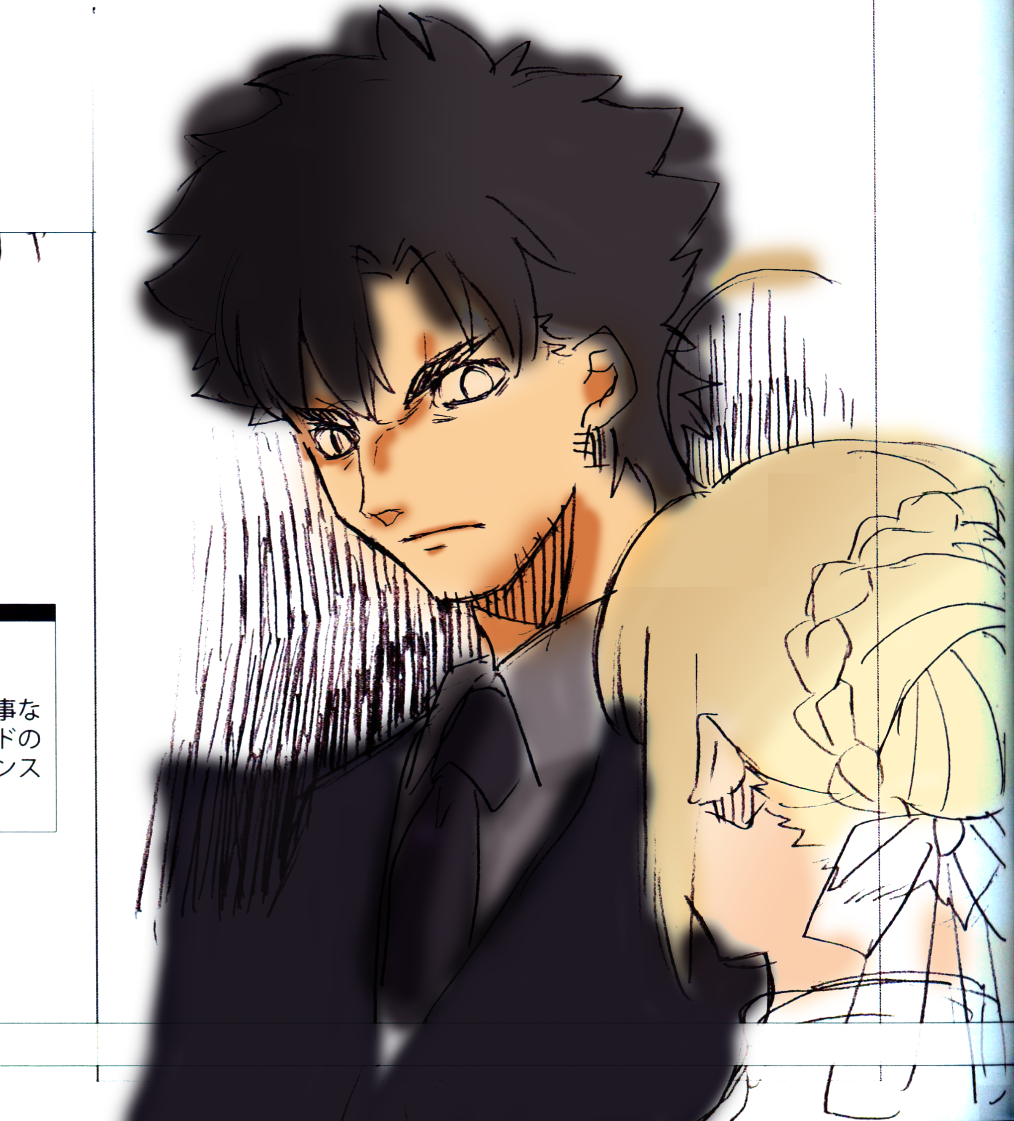 Tried to colour in the various greyscale chapter pages in Fate/Zero. Here's two WIPs: